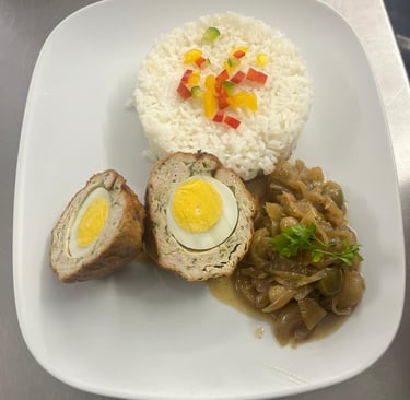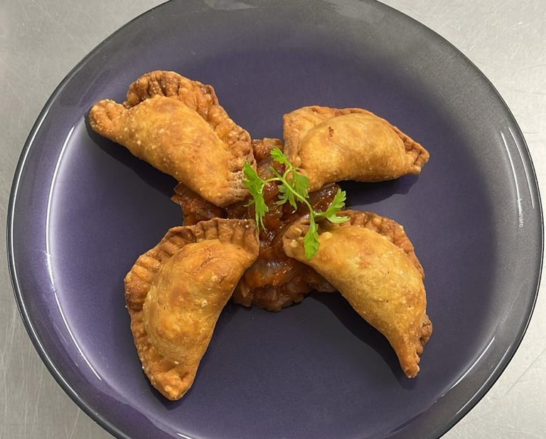 Beignets fourrés au thon ou au bœuf, accompagnés d’une sauce mijotée à base de tomates, oignons, épices.