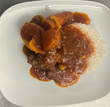 Viande de bœuf ou veau mijotée dans une sauce tomate, oignons, épices.